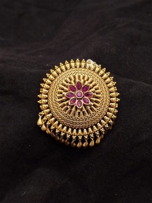 This antique hair brooch is a captivating blend of timeless elegance and old-world craftsmanship. Designed in imitation of Victorian or Edwardian styles, it features a delicate filigree frame adorned with intricate floral motifs, often symbolizing grace and femininity. The centerpiece may showcase a faux cameo or a vintage-cut crystal, lending it the aura of nobility without the extravagance of real gemstones. Its warm patina and slightly worn finish only enhance its nostalgic charm, making it a treasured accent that evokes the romance of bygone eras. Whether pinned into an elaborate chignon or displayed as a keepsake, this brooch tells a silent story of beauty passed down through generations.