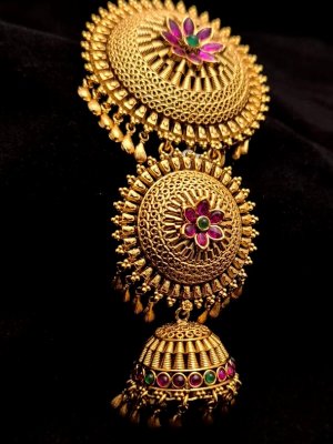 This antique hair brooch is a captivating blend of timeless elegance and old-world craftsmanship. Designed in imitation of Victorian or Edwardian styles, it features a delicate filigree frame adorned with intricate floral motifs, often symbolizing grace and femininity. The centerpiece may showcase a faux cameo or a vintage-cut crystal, lending it the aura of nobility without the extravagance of real gemstones. Its warm patina and slightly worn finish only enhance its nostalgic charm, making it a treasured accent that evokes the romance of bygone eras. Whether pinned into an elaborate chignon or displayed as a keepsake, this brooch tells a silent story of beauty passed down through generations.