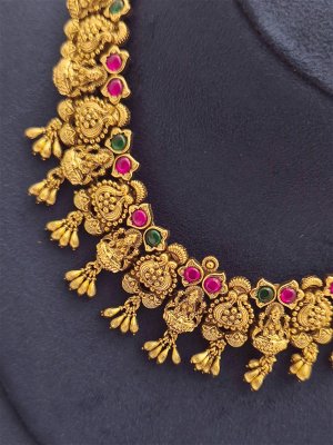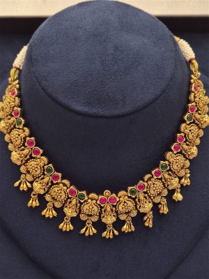 This stunning antique imitation necklace from New Hyderabad Pearls combines timeless elegance with intricate craftsmanship. Designed to reflect classic vintage charm, each piece features exquisite detailing and a unique blend of traditional elements. Perfect for weddings, special occasions, or adding a touch of regal sophistication to any outfit, this necklace is a true statement piece. Crafted with high-quality materials, it offers both beauty and durability, ensuring you can enjoy its antique allure for years to come. Elevate your jewellery collection with this beautiful, handcrafted antique necklace.