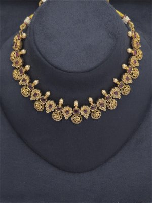 This stunning antique imitation necklace from New Hyderabad Pearls combines timeless elegance with intricate craftsmanship. Designed to reflect classic vintage charm, each piece features exquisite detailing and a unique blend of traditional elements. Perfect for weddings, special occasions, or adding a touch of regal sophistication to any outfit, this necklace is a true statement piece. Crafted with high-quality materials, it offers both beauty and durability, ensuring you can enjoy its antique allure for years to come. Elevate your jewellery collection with this beautiful, handcrafted antique necklace.