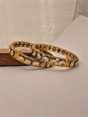 Imitation Kundan Bangles – Traditional Elegance & Timeless Beauty. Beautifully Crafted & Elegant Jewelry for All Occasions. Explore the charm of imitation Kundan bangles, intricately designed with faux Kundan stones. Perfect for weddings, festivals, or everyday elegance, these bangles bring a touch of royal beauty to your jewelry collection. Add a royal touch to your outfit with these imitation Kundan bangles, designed with precision and elegance. Featuring stunning faux Kundan stones set in a classic design, these bangles are perfect for brides, festive celebrations, or any special occasion. Their intricate craftsmanship and timeless appeal make them a must-have addition to your jewelry collection. Classic Design: Each bangle is intricately designed with high-quality imitation Kundan stones, offering a traditional yet elegant look. Perfect for Special Occasions: Ideal for weddings, festivals, or cultural events where you want to add a touch of sophistication. Versatile Styling: Can be paired with traditional or modern outfits for a stylish look. Affordable Luxury: Get the luxurious Kundan look at an affordable price, making it perfect for any occasion.